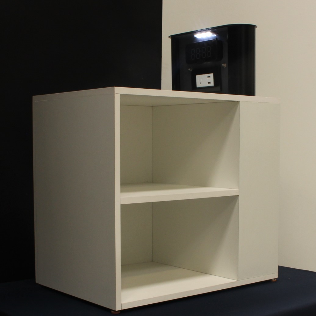 Gracias a su formato pequeño, estos muebles (que tienen un modulo utilitario metalico que aparece al ascender o se oculta al descender), son ideales para acompañar a los sofás de la sala, o simplemente como veladores en el dormitorio. El módulo utilitario metálico siempre tiene luz de iluminación led con selección de nivel por control remoto.
